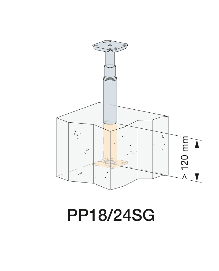 PP18 features a post mounting plate on a screw allowing it to be adjusted to a specific standoff height ranging from 180-240 mm.
