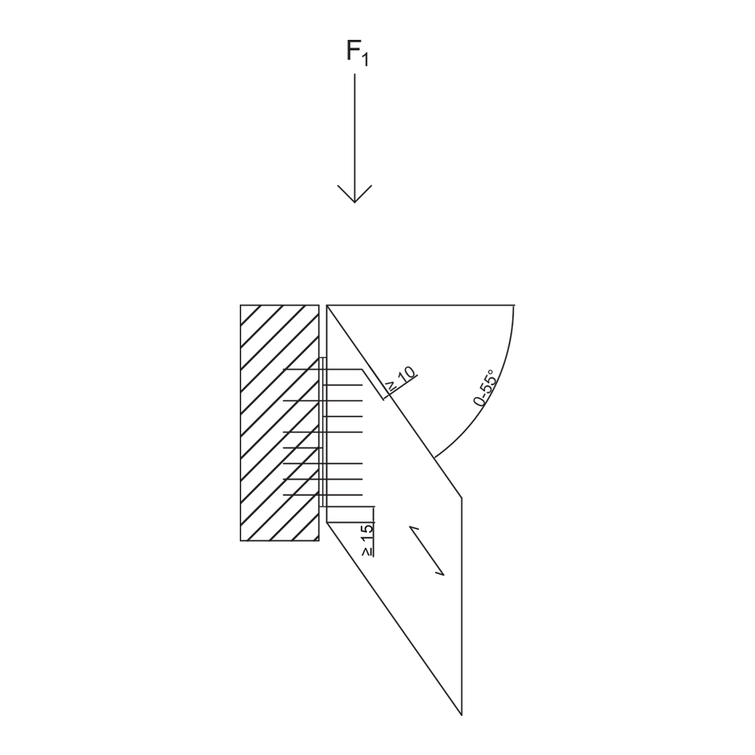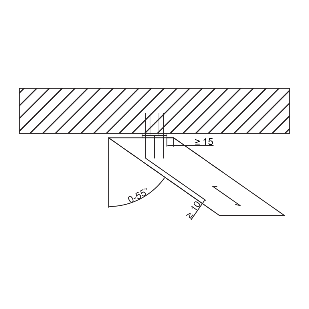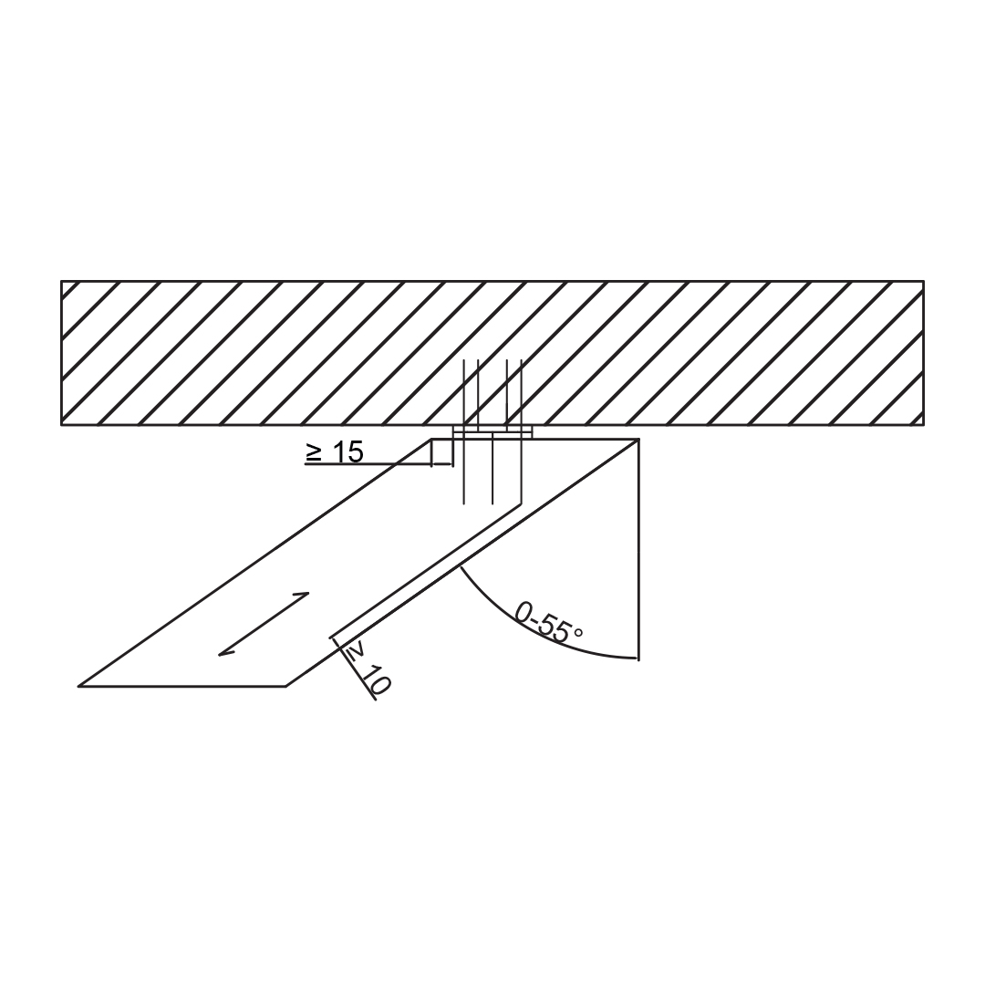 Standardní instalace - nakloněná β = 35° až 145°, sklon α = 25° až 155°
