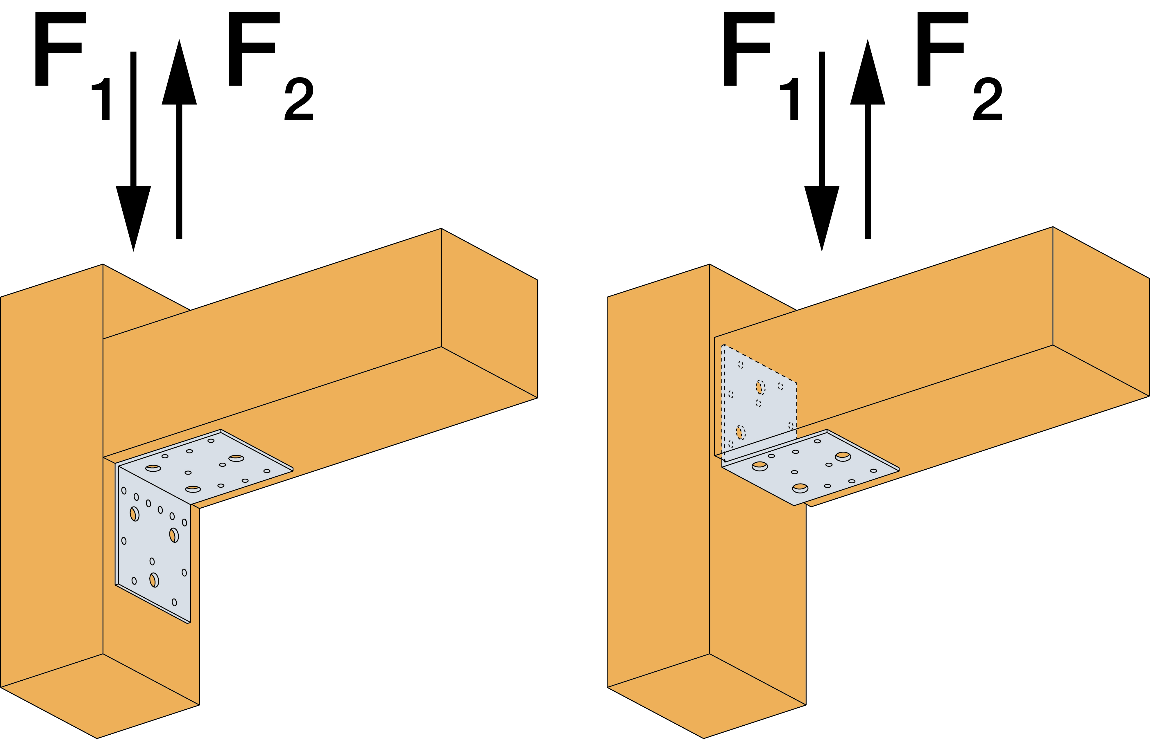 Tragfähigkeit - Holz an Holz / 2 Winkel pro Verbindung - Vollausnagelung