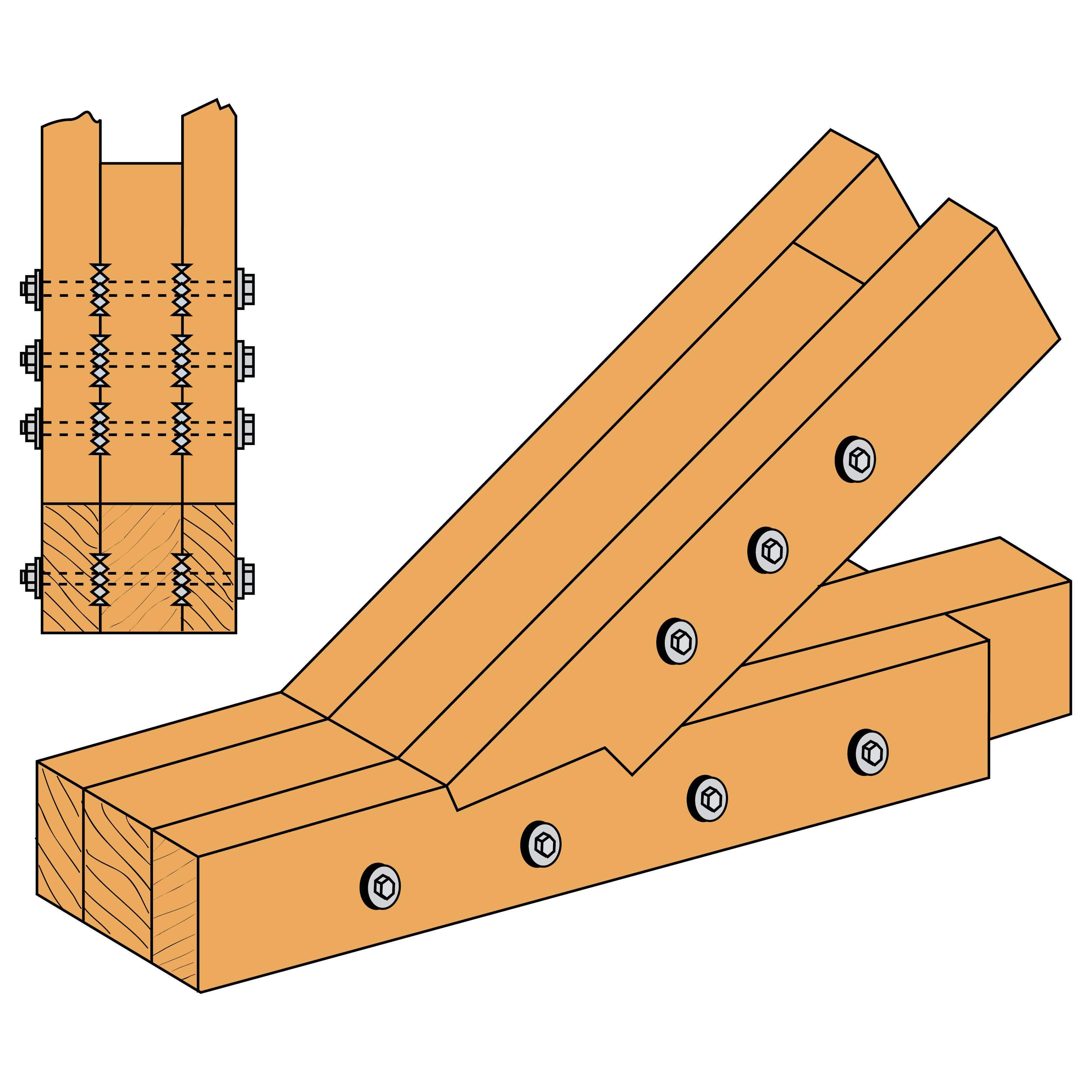 | Art. nr. | Typ | Šroub Ø | Tloušťka vybraného řeziva | Min. vzdálenosti [mm] | Typický střihový odpor (odpor šroubu není zahrnut) | ||||||