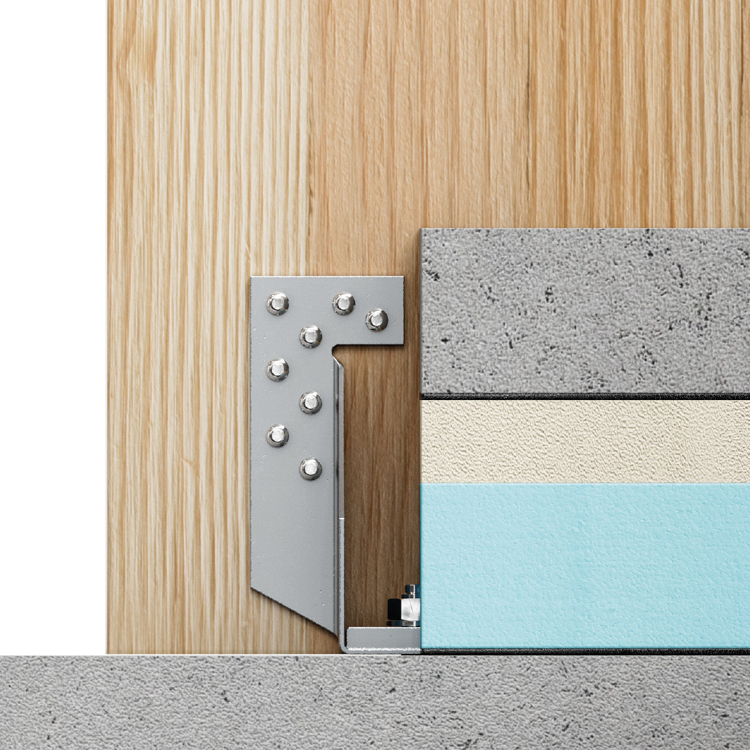 • Flexible: allows up to 25mm tolerance to ensure optimal fastener edge distance where a concrete-CLT interlayer exists.