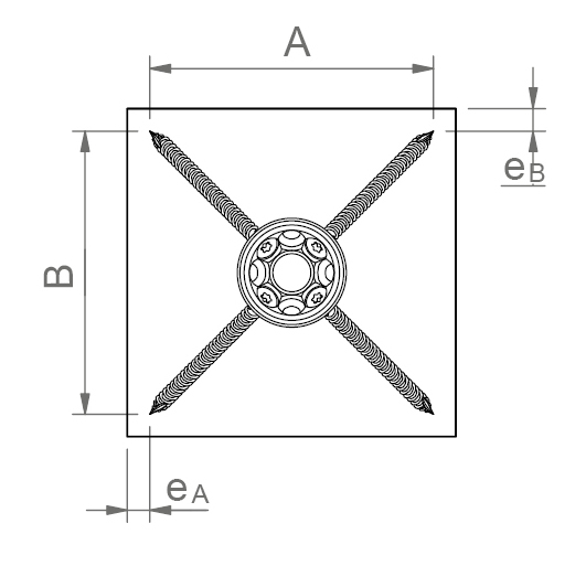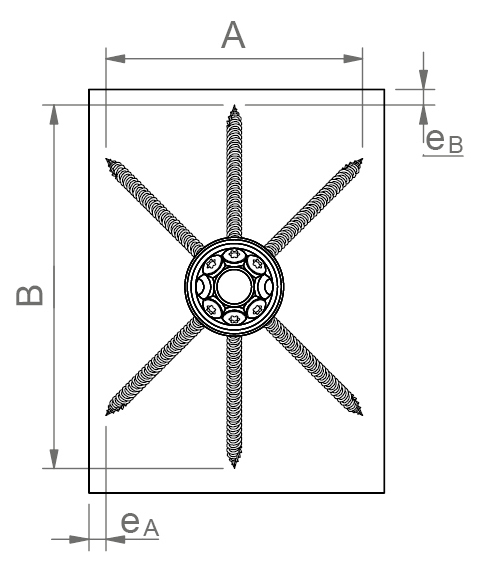 | number [ n ] | dimensions [ Ø x 1 ] | A | Overhang to the edge [ eA ] | B | Overhang to the edge [ eB ] | H | Overhang to the edge [ eH ] | drillinhg depth [ Tmax ] | |