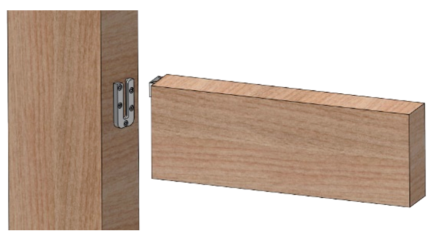 - On joist, TTUFS Ø4mm (full thread) according to ETA-21/0670: The TTUFS screws are inserted 45° to the connector. Except one TTUFS in the middle of the joist (male part), which is inserted into the joist perpendicular to the connector, this one is also used as an installation help.