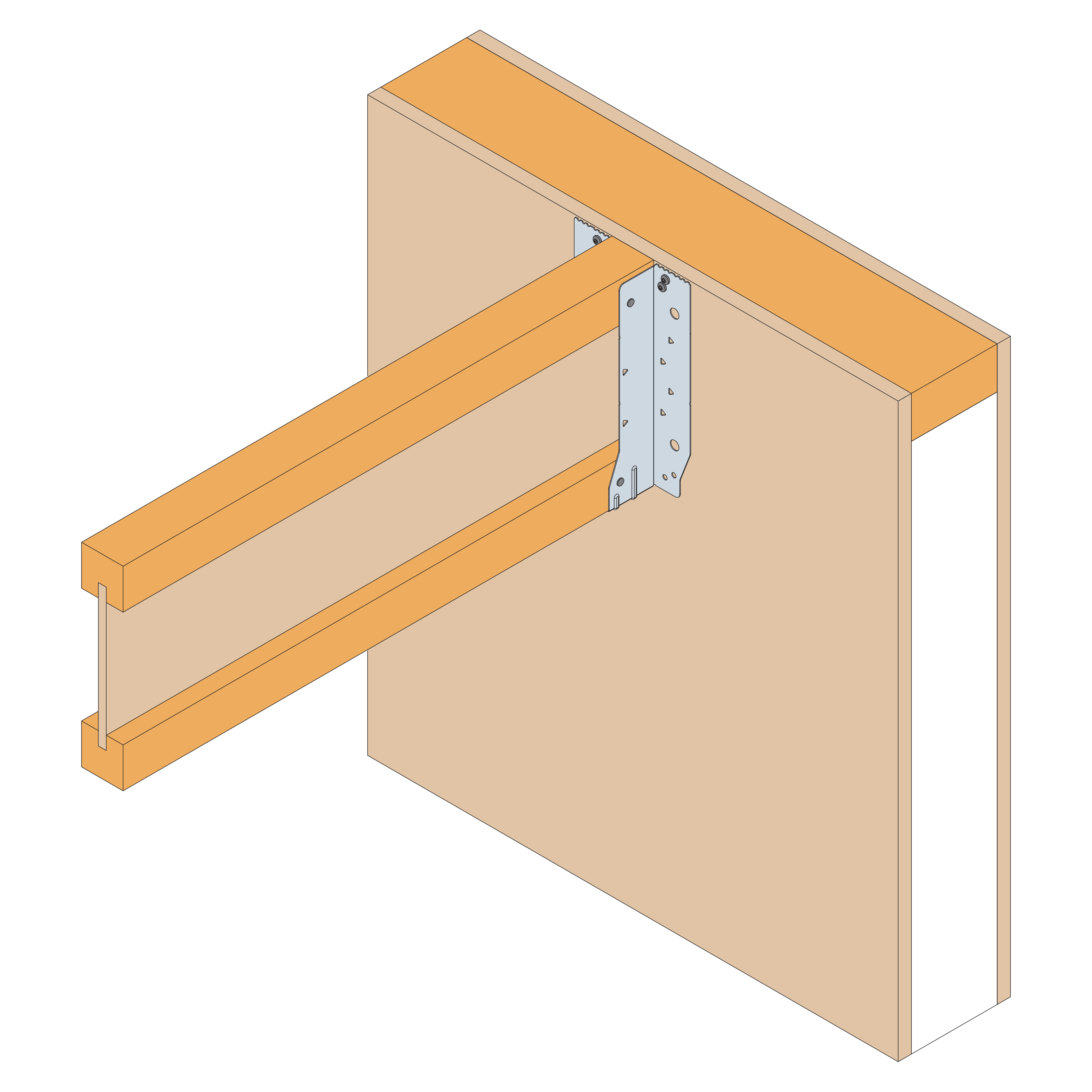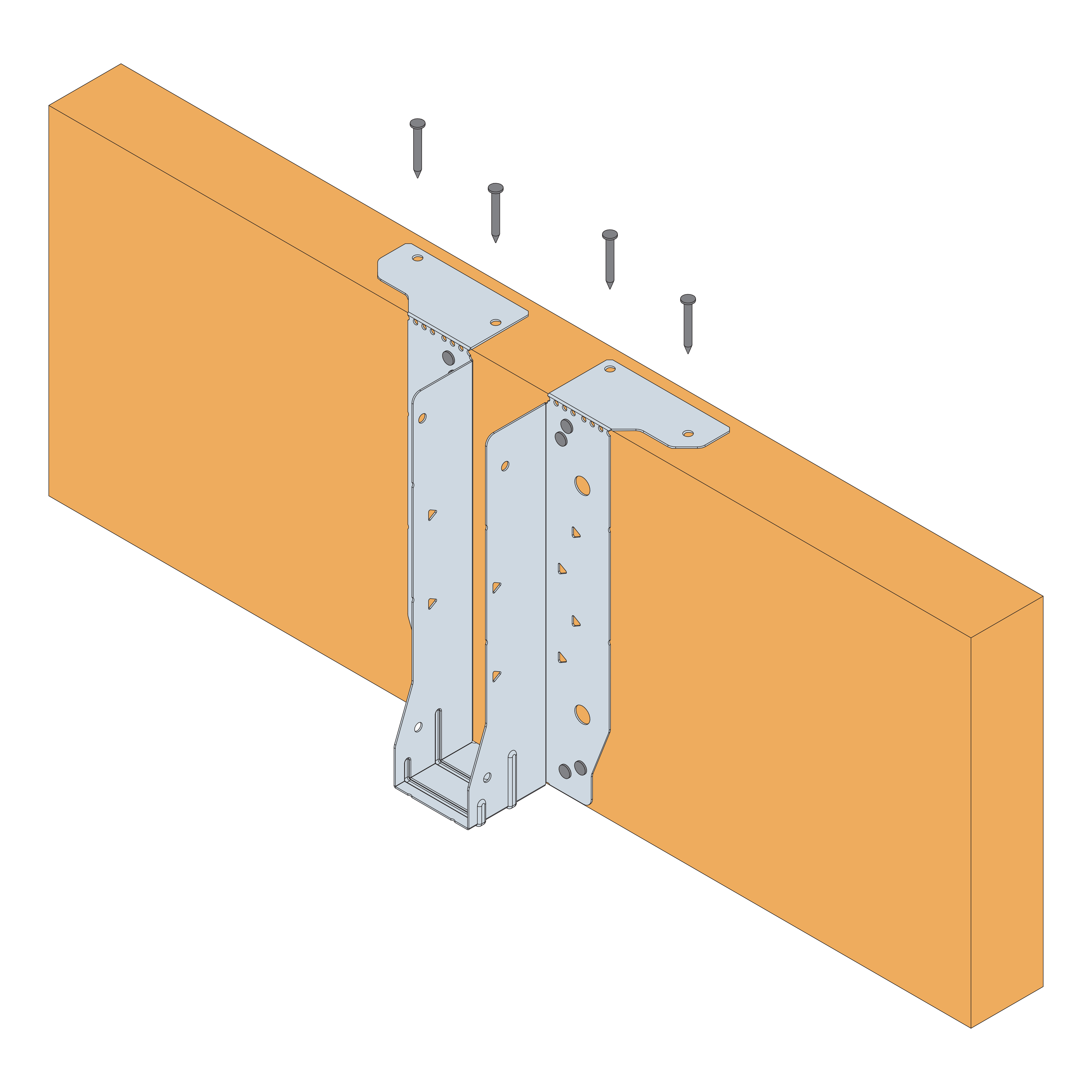 - Position the EWH hanger onto the face of the SIP so that the top of the carried member will finish level with the top of the SIP.