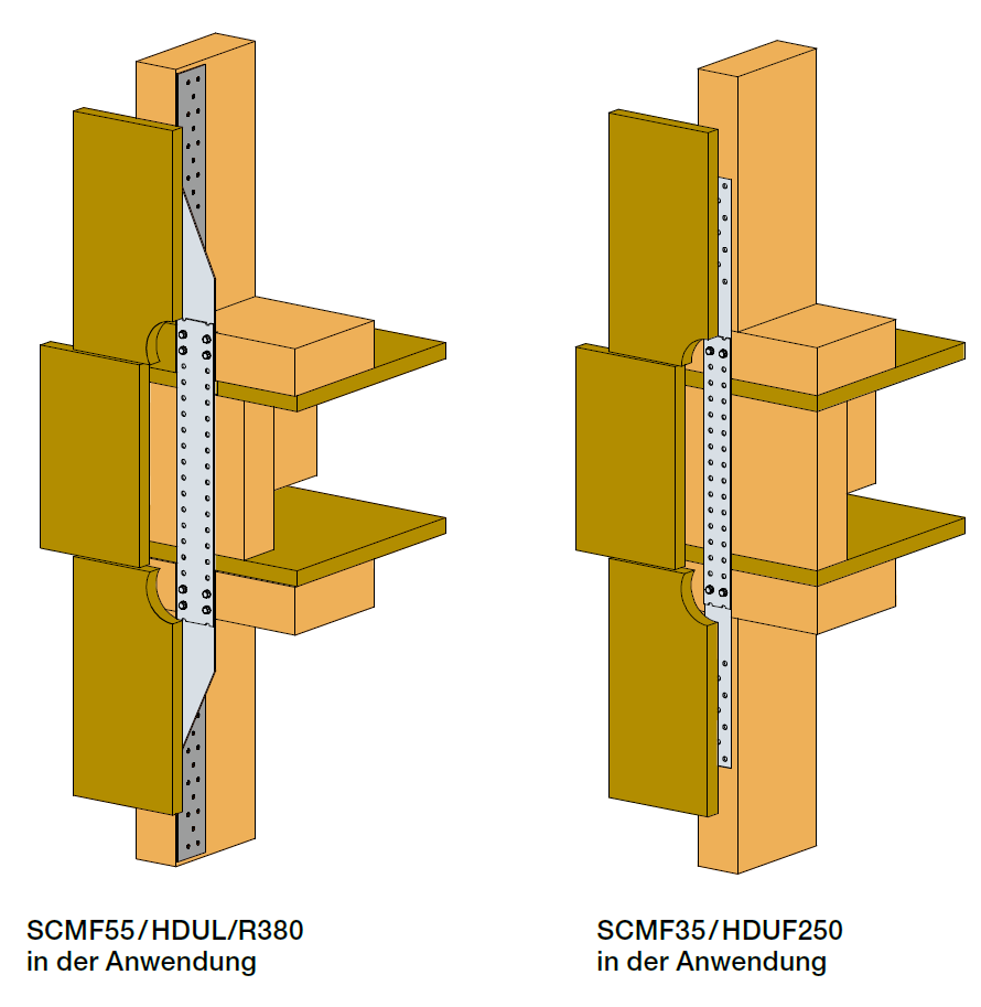The SCMF storey connector is a component of the two-part tie rod and can be quickly and flexibly adapted to the storey transition heights thanks to the continuous perforation.