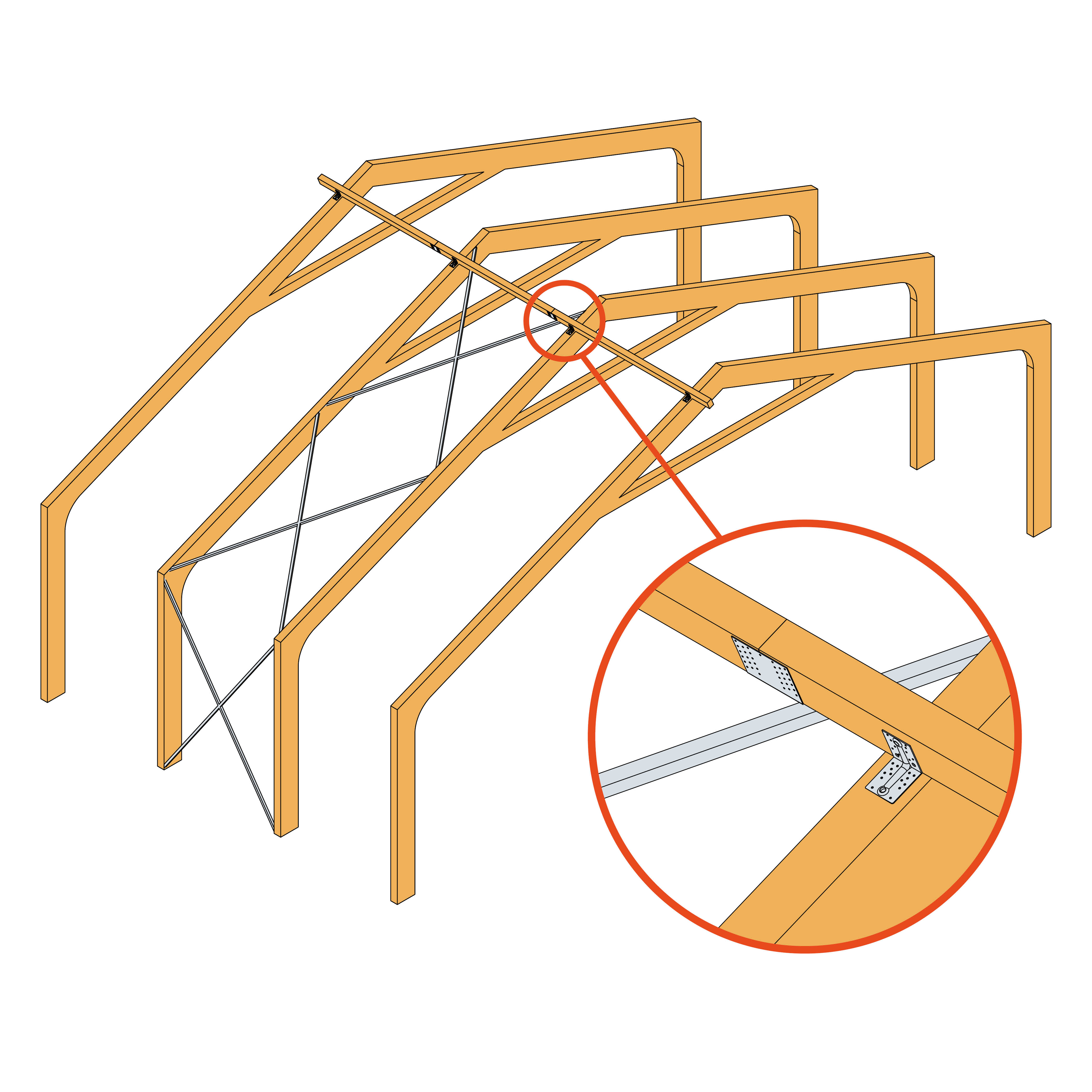 Konektory GERW jsou vhodné pro společné uchycení nosníků. Kromě příčné síly ve vertikálním směru může absorbovat síly ve směru nosníku, a proto jsou vhodné pro přesměrování síly. V závislost na zatížení je možné použít jak částečné, tak plné zahřebíkovaní.