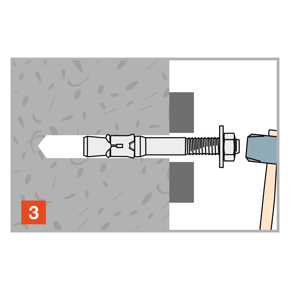 Heavy-duty wedge anchor for the medium load range, in sizes M8 - M20 for anchoring in non-cracked concrete C20/25 - C50/60. With coating 3DG