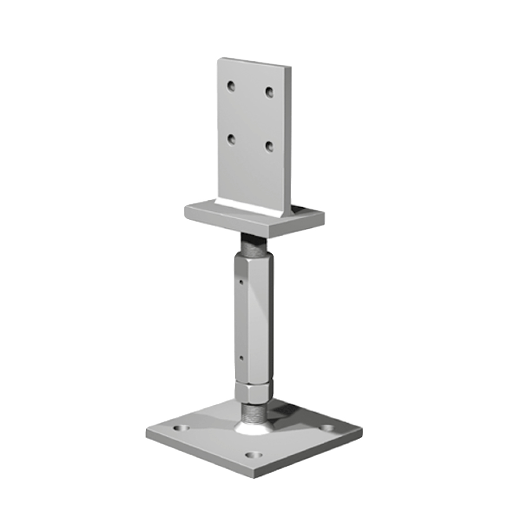 - Tyto patky sloupku jsou stále nastavitelné po instalaci a jsou výhodné pro skryté připojení, protože vzpřímená štěrbinová deska je instalována k základní desce