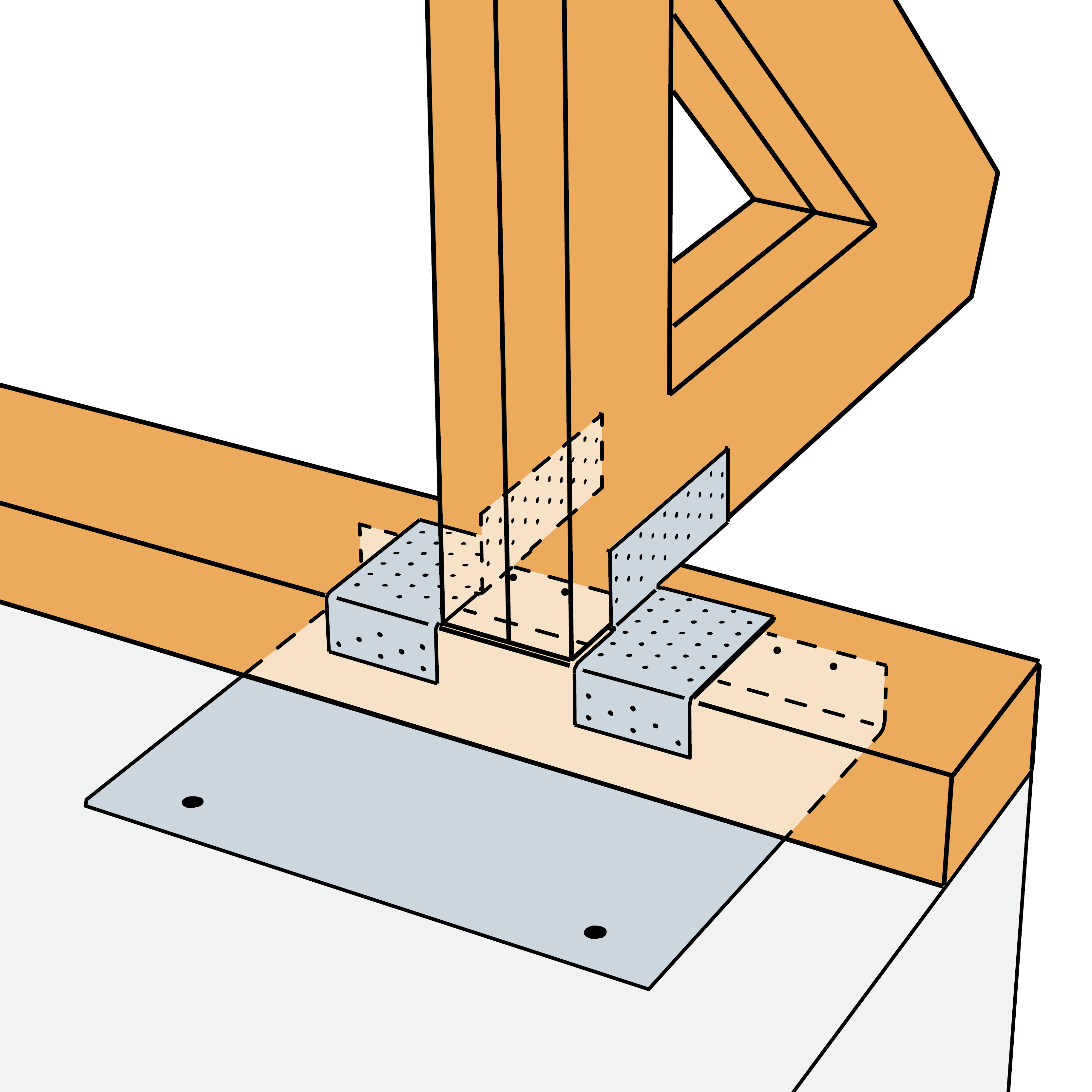 SHLM/ SHLS Schwellenhalter werden am Beton mit Ankerbolzen, an der Schwelle mit CNA Kammnägeln oder CSA Schrauben befestigt
