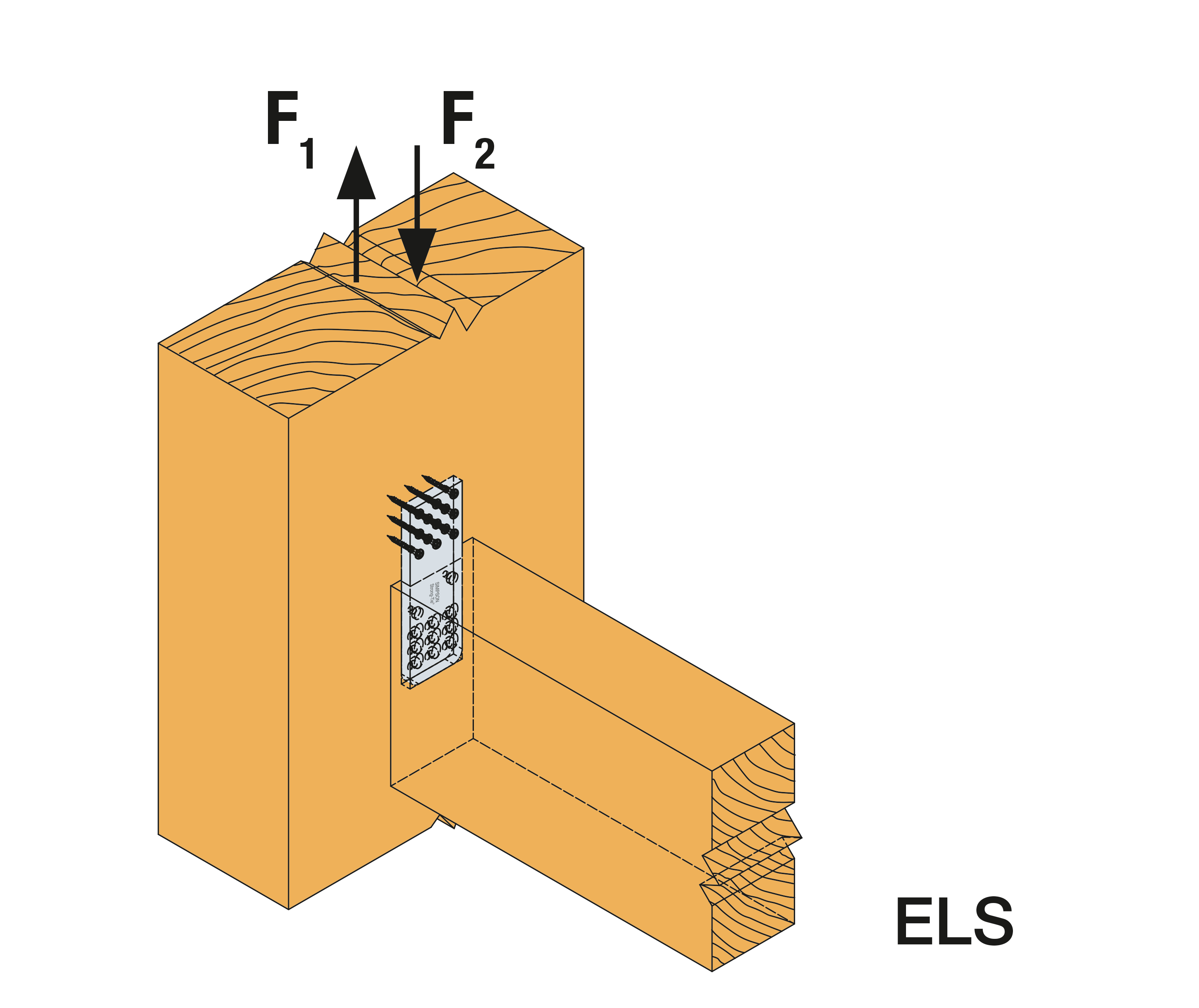• Pro připojení sekundárních nosníků ze dřeva nebo dřevěných materiálů do hlavní nosné konstrukce ze dřeva / dřevěných materiálů