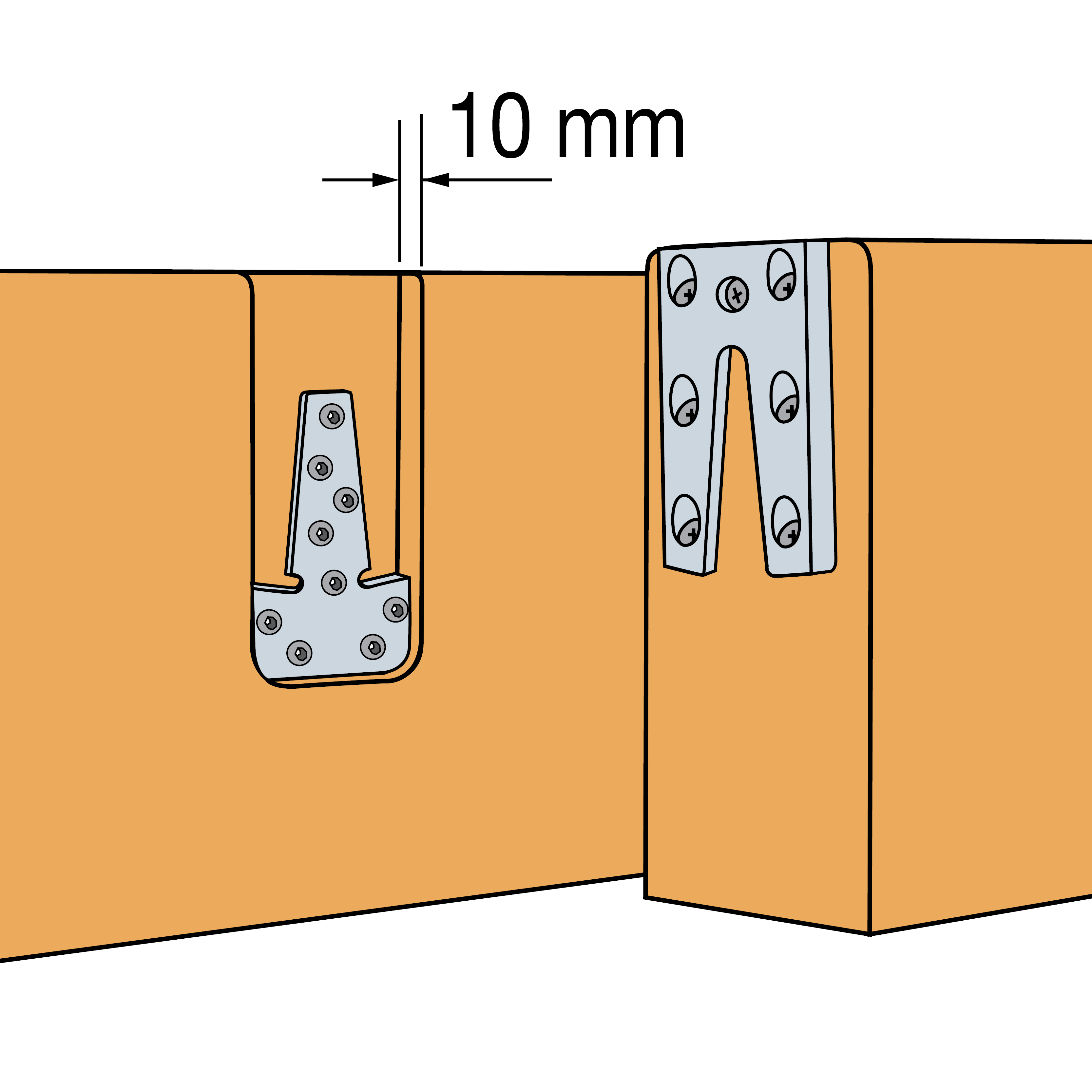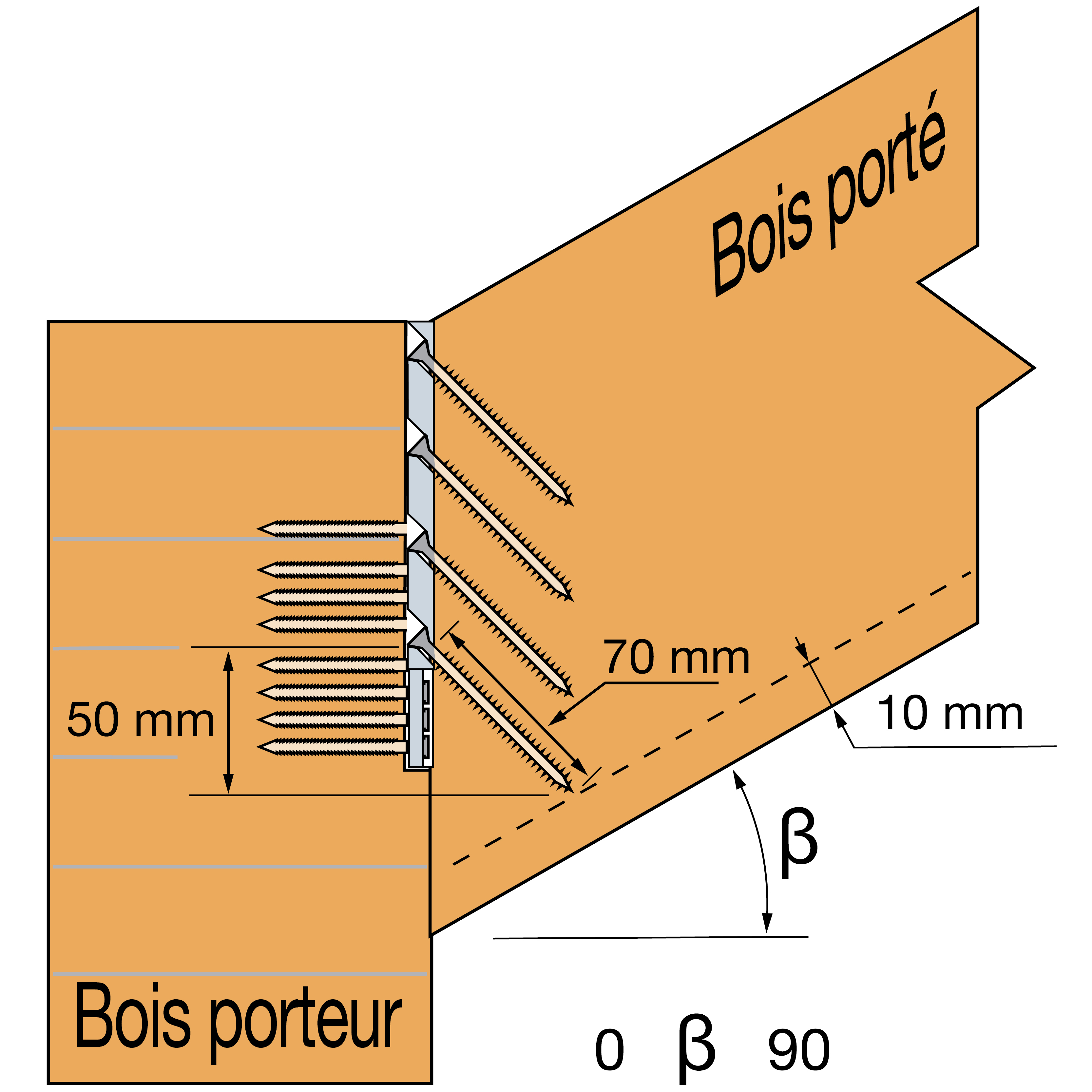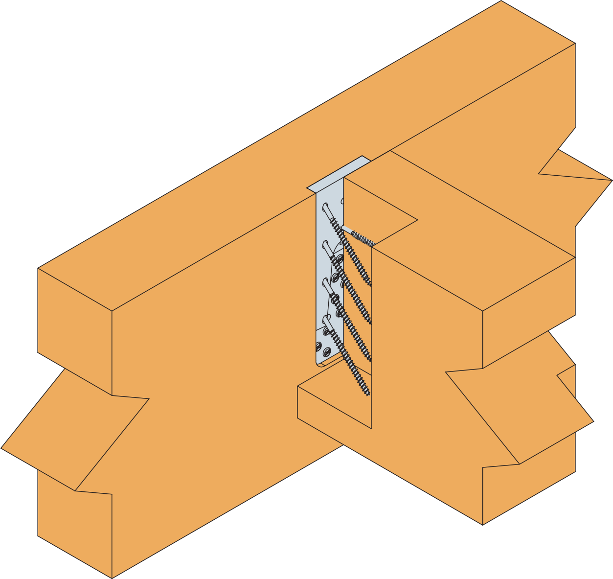 - Pro připojení sekundárních nosníků ze dřeva nebo dřevěných materiálů do hlavní nosné konstrukce ze dřeva / dřevěných materiálů