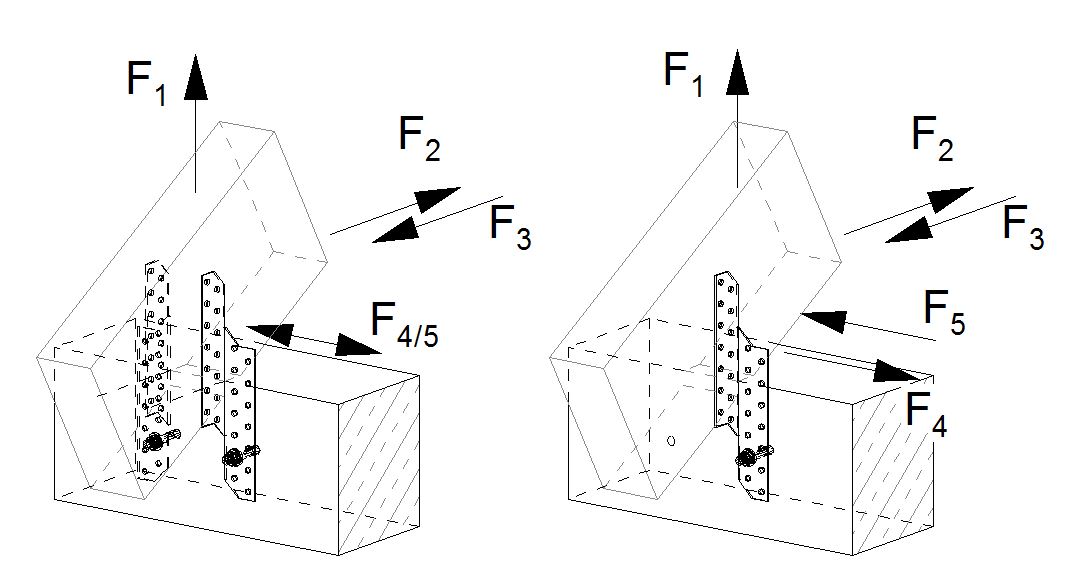 The capacity for load direction F2/3 and for F4/5 is the sum of the single capacities.