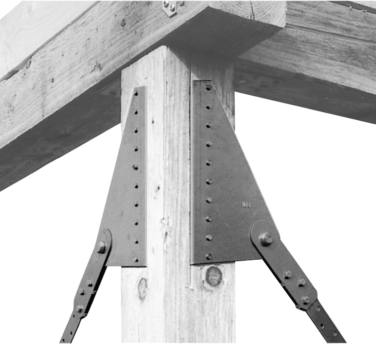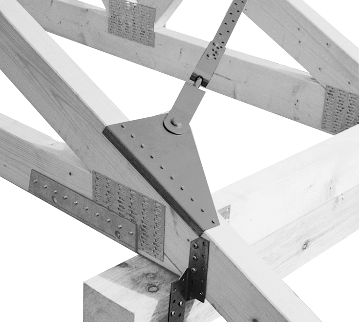 Jedna páska konektoru do konce kotvy zavětrovacího systému + dodatečné otvory pro spojovací prostředky.