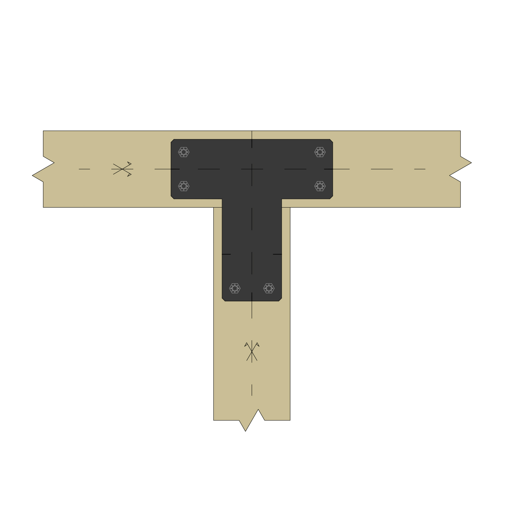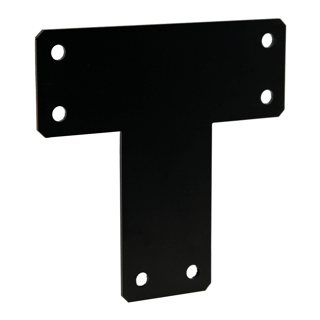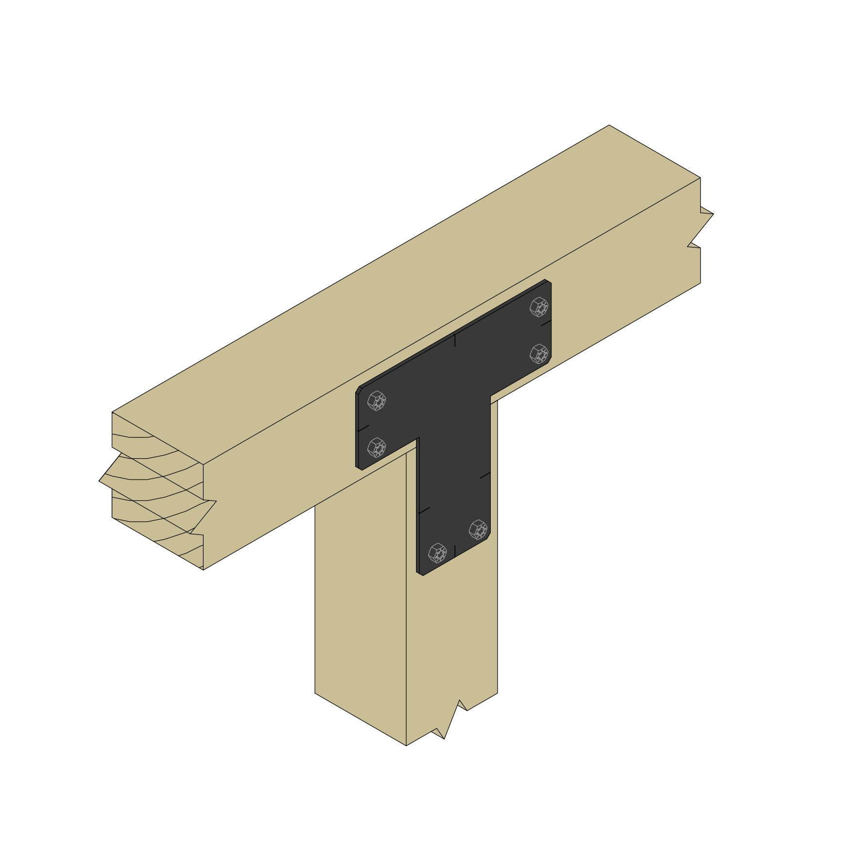 T shaped strap for connecting beams to posts in garden applications such as pergolas and other light constructions.