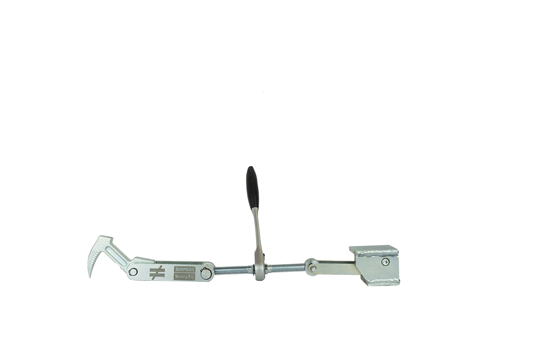 The WEC is a tensioning device for joining construction elements and beams. Together with the optional WECSA accessory, the tool is an ideal aid for tensioning wind braces. The double trapezoidal threaded spindle in conjunction with the high-quality ratchet ensures twice as fast and yet effortless tensioning compared to a standard single-run threaded spindle. The hand-forged, robust hooks guarantee secure installation and a perfect hold in the wood. The WECSA panicle strip holder is screwed onto the spindle with a right-hand thread instead of a hook. An eccentric clamping device reliably holds panicle strips up to 80 mm wide, enabling hands-free attachment of the panicle strips to the wooden structure.