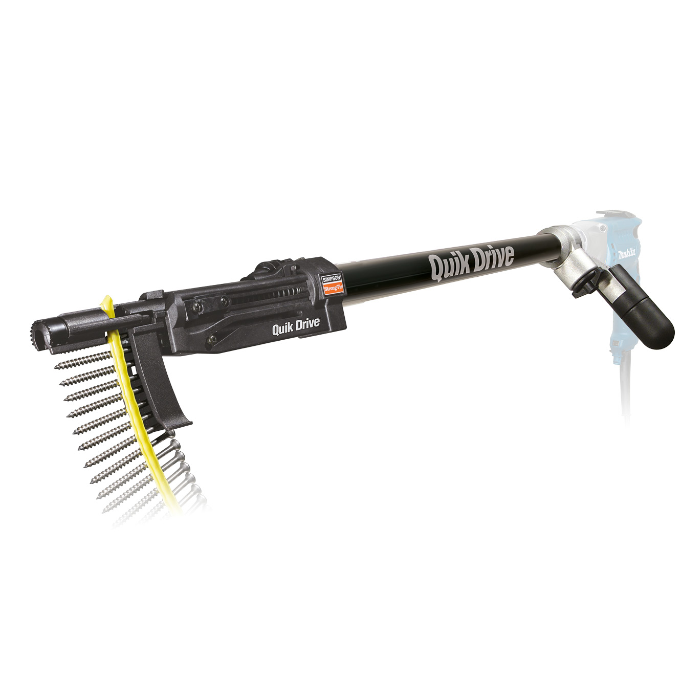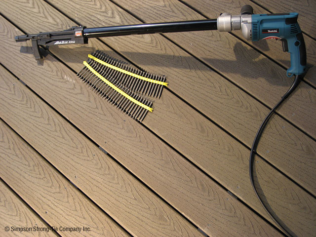 Teflon® tool for fixing timber to timber support and decking, perfectly suited to applications for fixing exotic wood deck boards to exotic joists WITHOUT pre-drilling. Accepts Quik Drive® tcollated screws from length 38 to 76 mm.
