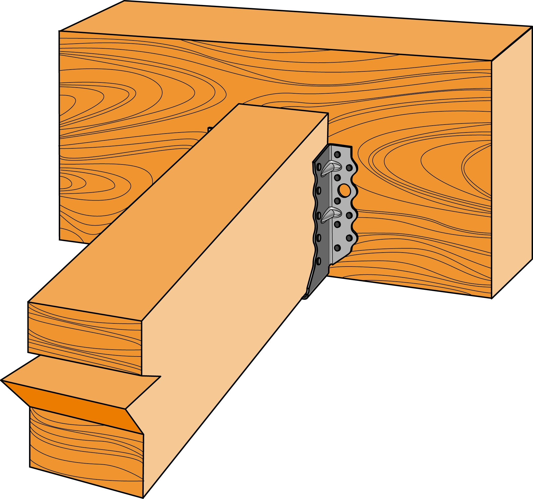 - Pro připojení sekundárních nosníků ze dřeva nebo dřevěných materiálů do hlavních nosných / opor dřevo / kompozitního dřeva nebo z betonu / oceli