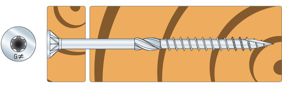 Stavební vrut TTZNFS má ozubený závit pro snížení šroubovacího momentu a používá se ve venkovní oblasti.
